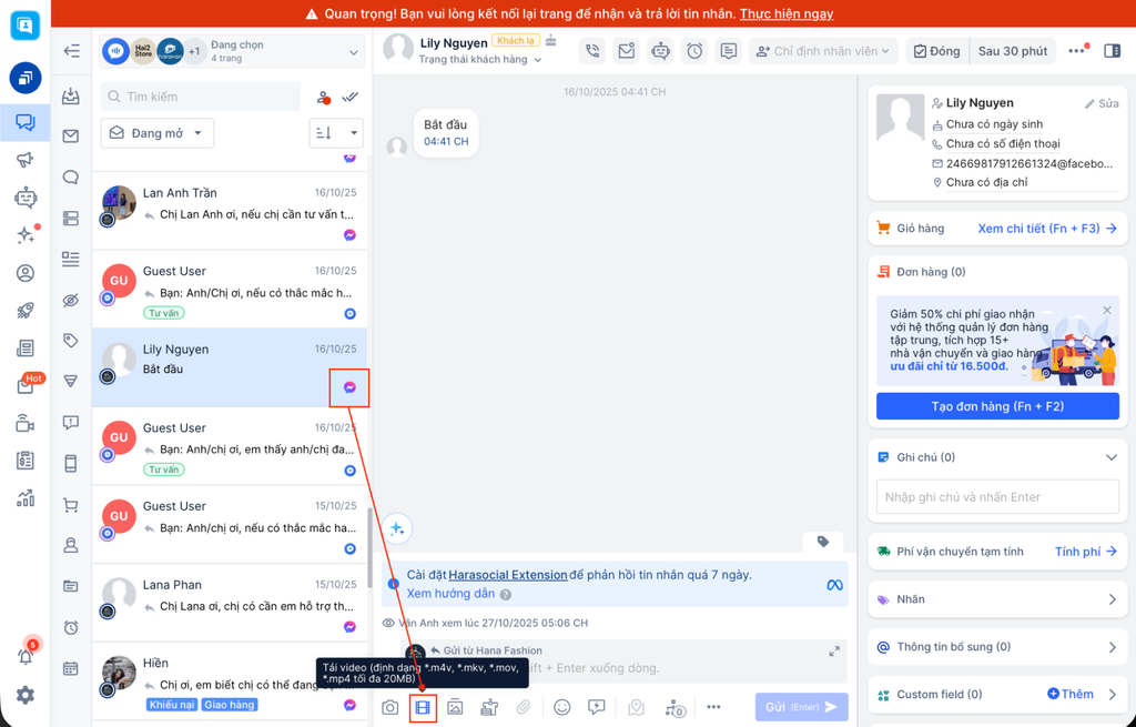 Haravan đã mở tính năng gửi video qua tin nhắn Facebook Messenger cho tất cả khách hàng đang sử dụng Haravan Social.