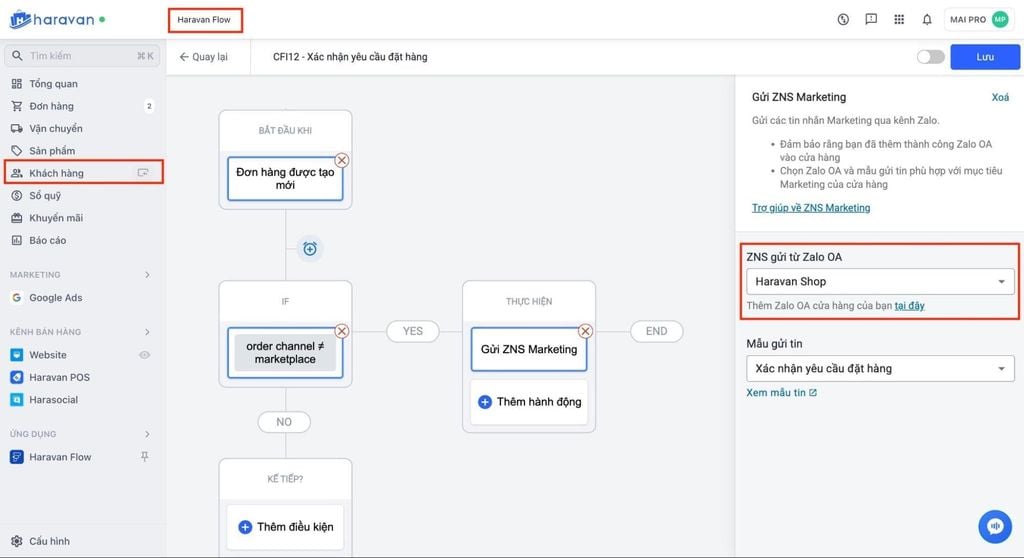 2. Dùng Haravan Flow để gửi thông báo đơn hàng qua ZNS