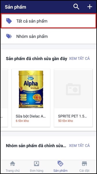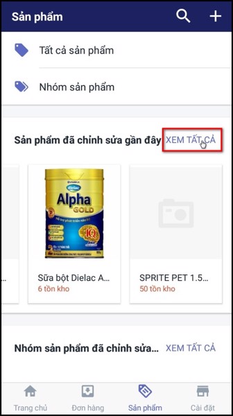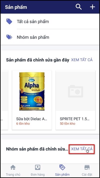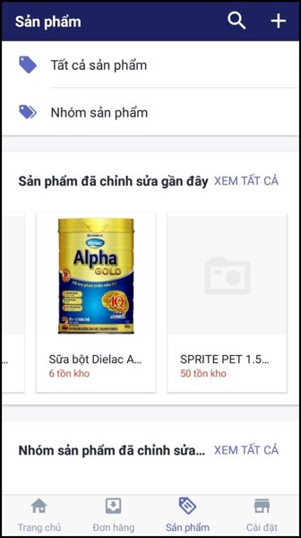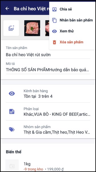 Ứng dụng hỗ trợ Nhà bán hàng thực hiện một số thao tác nhất định cho sản phẩm: