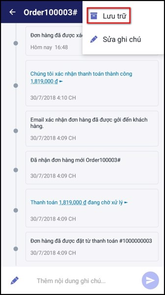 - Lưu trữ / Bỏ lưu trữ đơn hàng: