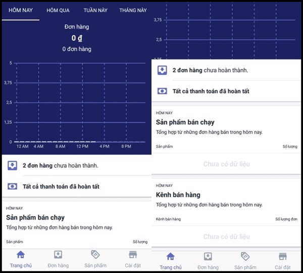Thanh Trang chủ hỗ trợ Nhà bán hàng xem các thống kê cơ bản và cần thiết nhất.