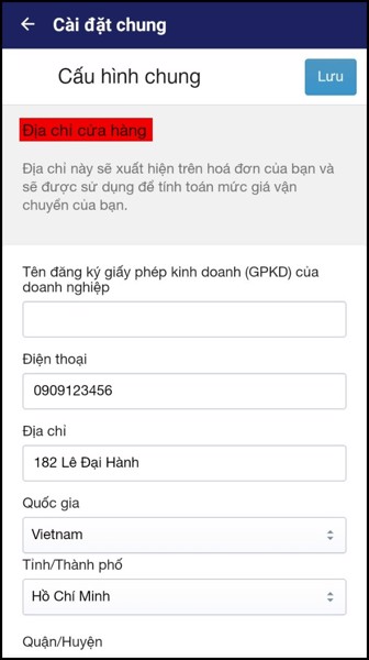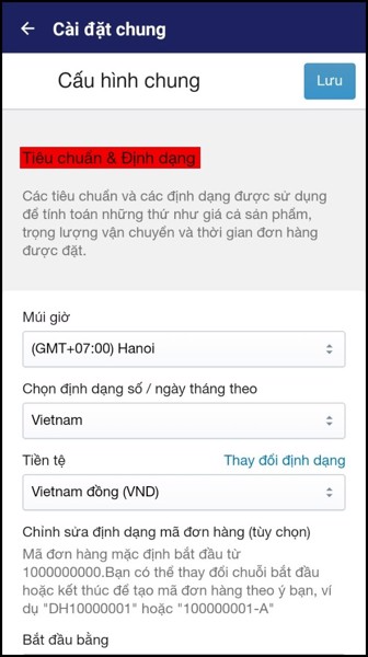 Nhà bán hàng thiết lập cài đặt chung như sau: