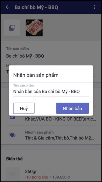 Nhà bán hàng cần đặt tên mới cho sản phẩm nhân bản đó. Sau đó chọn Nhân bản.