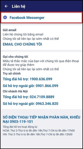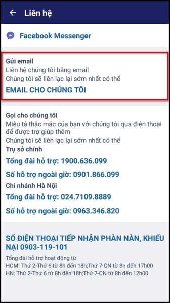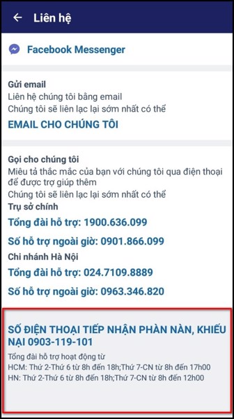 - Gọi hỗ trợ: nhấp chọn số điện thoại cần liên hệ.