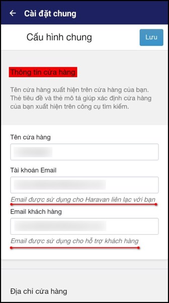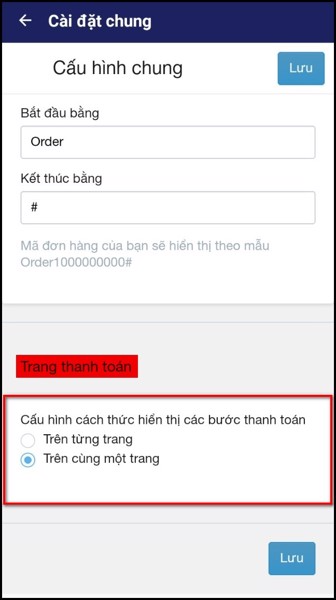 - Trên trang Cài đặt chung, Nhà bán hàng thiết lập cấu hình cho: