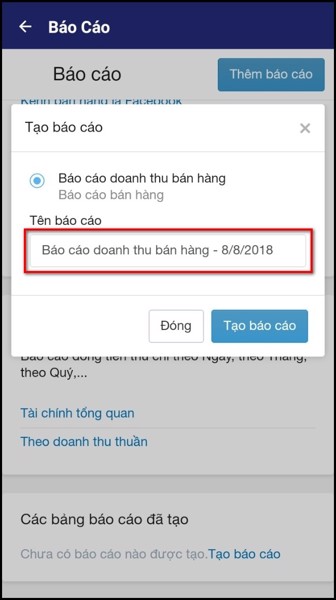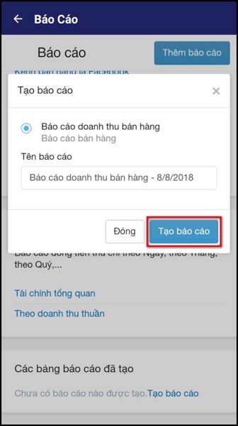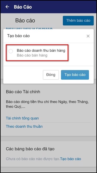 - Trong hộp thoại, chọn Báo cáo doanh thu bán hàng.