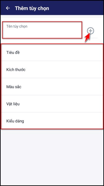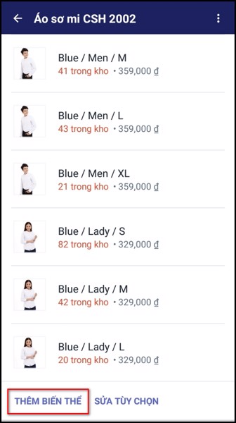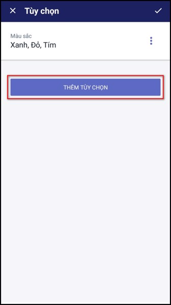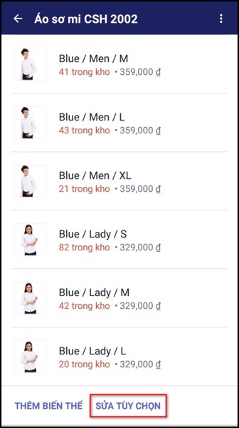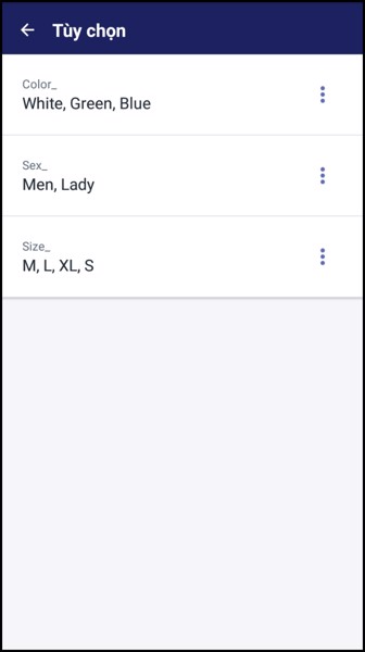 - Ứng dụng chuyển đến trang tùy chọn, hiển thị các thuộc tính của sản phẩm đó.