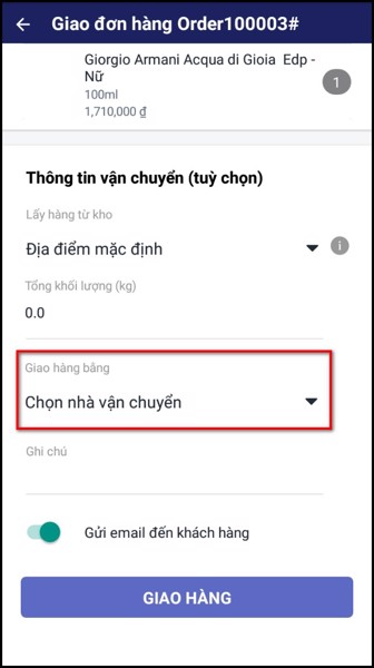 - Khi đó, ứng dụng tự động điều hướng về kênh liên hệ mà Nhà bán hàng đã chọn.