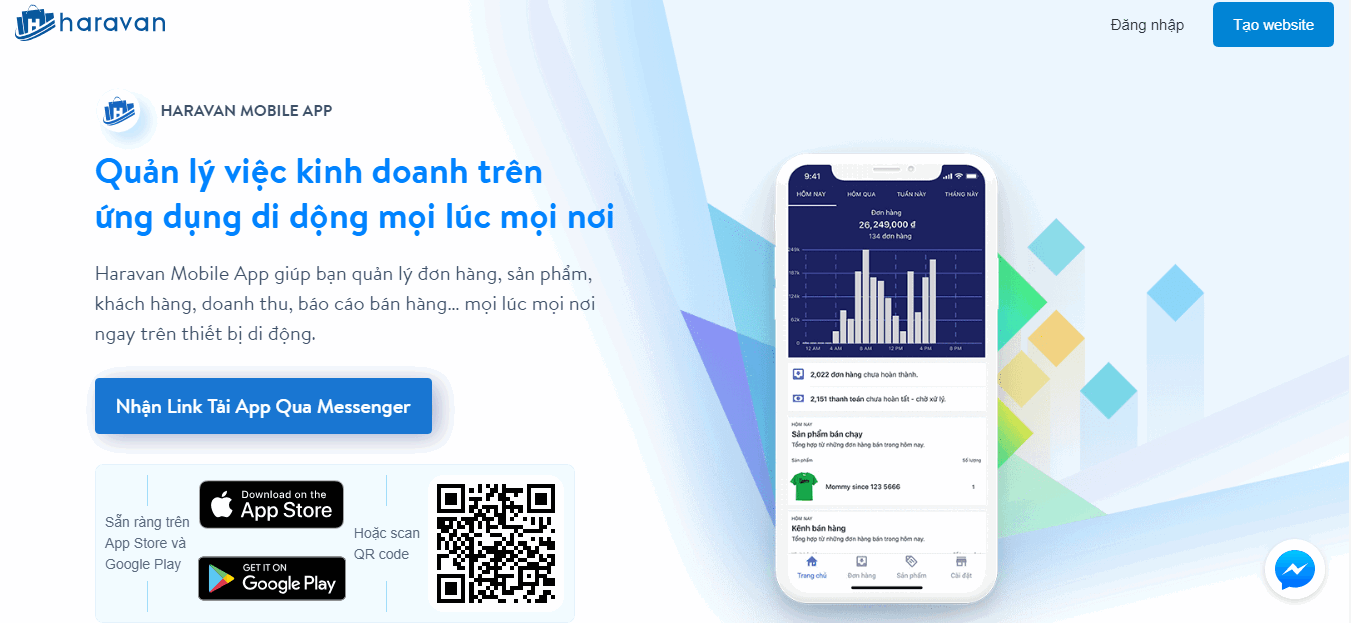 Ứng dụng Haravan là một trang quản trị thu nhỏ giúp bạn có thể quản lý đơn hàng, sản phẩm, khách hàng nhanh chóng ngay trên thiết bị di động của bạn.