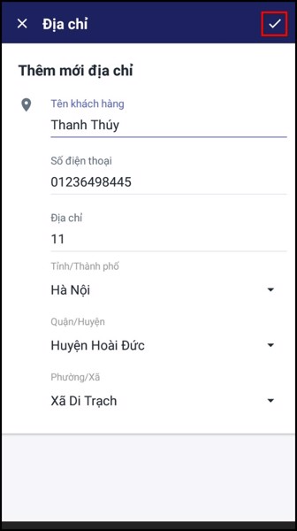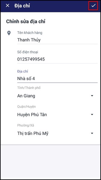- Nhấn vào dấu tick để ghi nhận thông tin.
