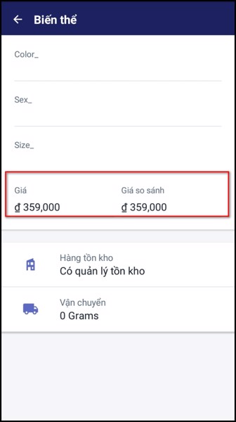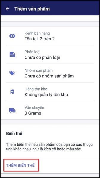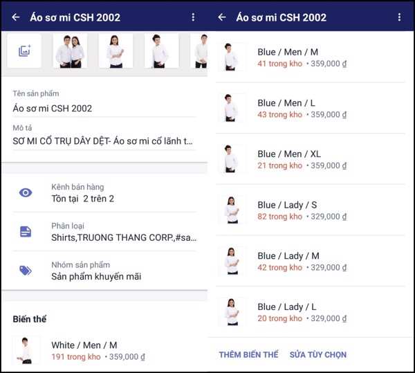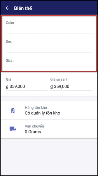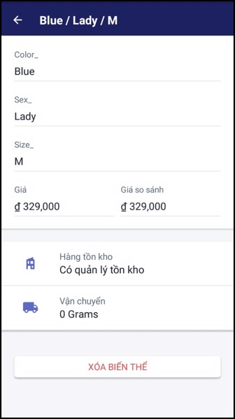 - Trong trang chi tiết của biển thể, Nhà bán hàng thay đổi thông tin cho biến thể.