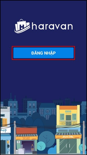 - Nhà bán hàng vào ứng dụng. Tại trang khởi tạo, Nhà bán hàng chọn Đăng nhập.