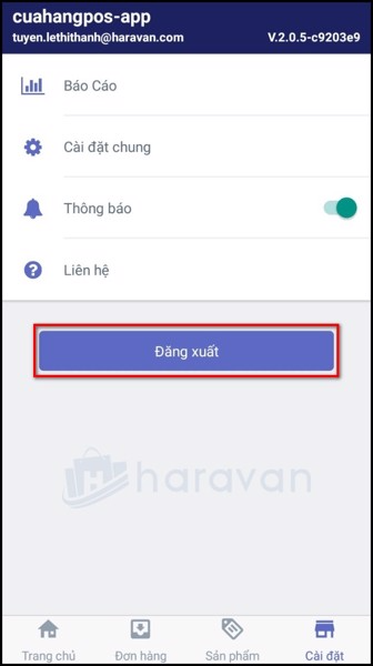 Nhà bán hàng thực hiện đăng xuất khỏi thiết bị di động như sau: