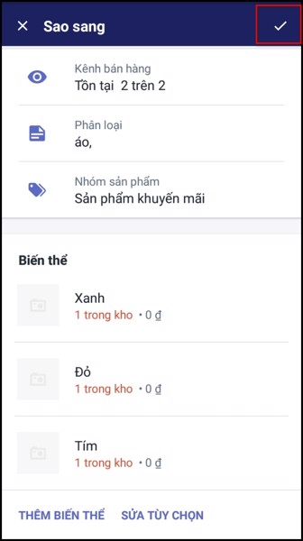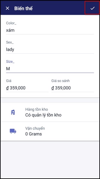 - Sau khi thêm thông tin và thiết lập các tùy chinh, Nhà bán hàng vào dấu tickđể tạo biến thể.